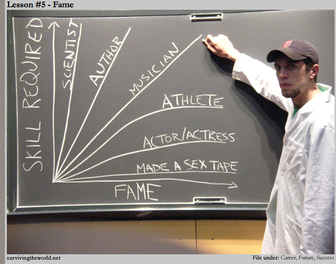 Dante is synthetically resourceful in his “episodes,” putting together in each one a satiric idea, a blackboard, chalk, nicely legible statements and scientific graphs/charts, and a “professor” who has a serious expression we remember straight out of Classroom 1.0. Maybe not LoL amusing, but pretty consistently interesting and witty.