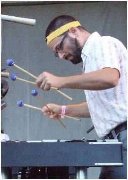When he accompanies, vibes player Jason Adasiewicz puts down a harmonic wash of sound that perfectly counter-points the other players. But when he solos, he dances frenetically over his machine, making an exciting blizzard of harmonic, metallic sound. Heavy metal, indeed!