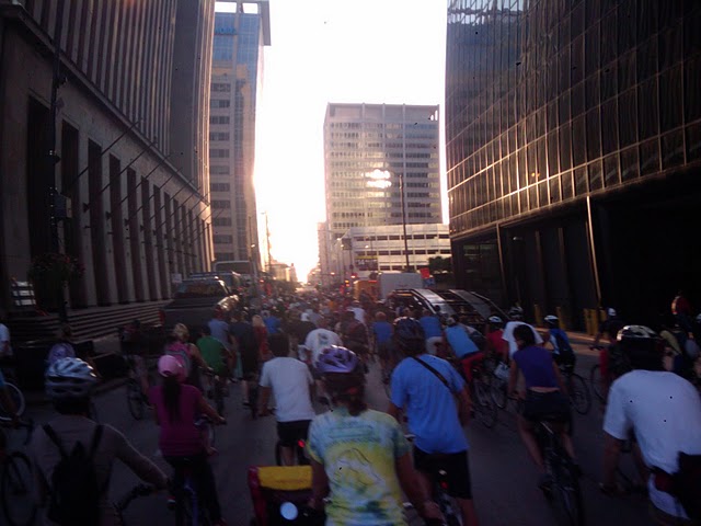 Finally, my network of friends and family are the most important to me. With my friends, our relationships have all evolved into differentiated “communities of activity.” We do things with each other. For instance, with one set of friends we occasionally join in a huge community of practice, the monthly Critical Mass ride. Attached is a photo of the August ride we went on. With another group of friends, we make music together. (You’ll have to wait before you can access our latest mp3s). Still another group likes to see plays and challenging movies. The point is, it is purposeful common activities that join us. Without them, would we even want to be around each other? Are they even “friends” if they are all situationally so?