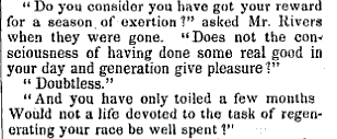 But I especially like how her overly-reasonable cousin, Mr. Rivers, points out the nobility of a teacher’s work–how at its best, this job is its own reward: