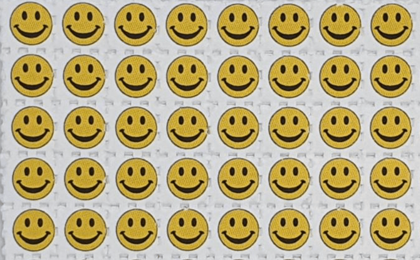 I followed him into the kitchen where he held his hand out and said, “a hundred.” I gave him my cash. He counted it and put it into his pocket. Then he reached behind the hood over the stove and pulled down a box from which he drew a single sheet of paper, put it in a clear plastic bag, and handed it to me. 40 little square yellow smiley faces.